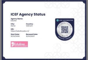 Eduline Scholars tự hào thông báo đã chính thức đạt ICEF Agency Status, chứng nhận uy tín toàn cầu từ ICEF, dành cho các tổ chức tư vấn du học đáp ứng những tiêu chuẩn khắt khe về chất lượng dịch vụ, tính minh bạch và đạo đức nghề nghiệp. Đây là một cột mốc quan trọng, khẳng định vị thế của Eduline trong lĩnh vực tư vấn du học quốc tế, đồng thời là cam kết mạnh mẽ về chất lượng mà chúng tôi mang đến cho học sinh và phụ huynh.
