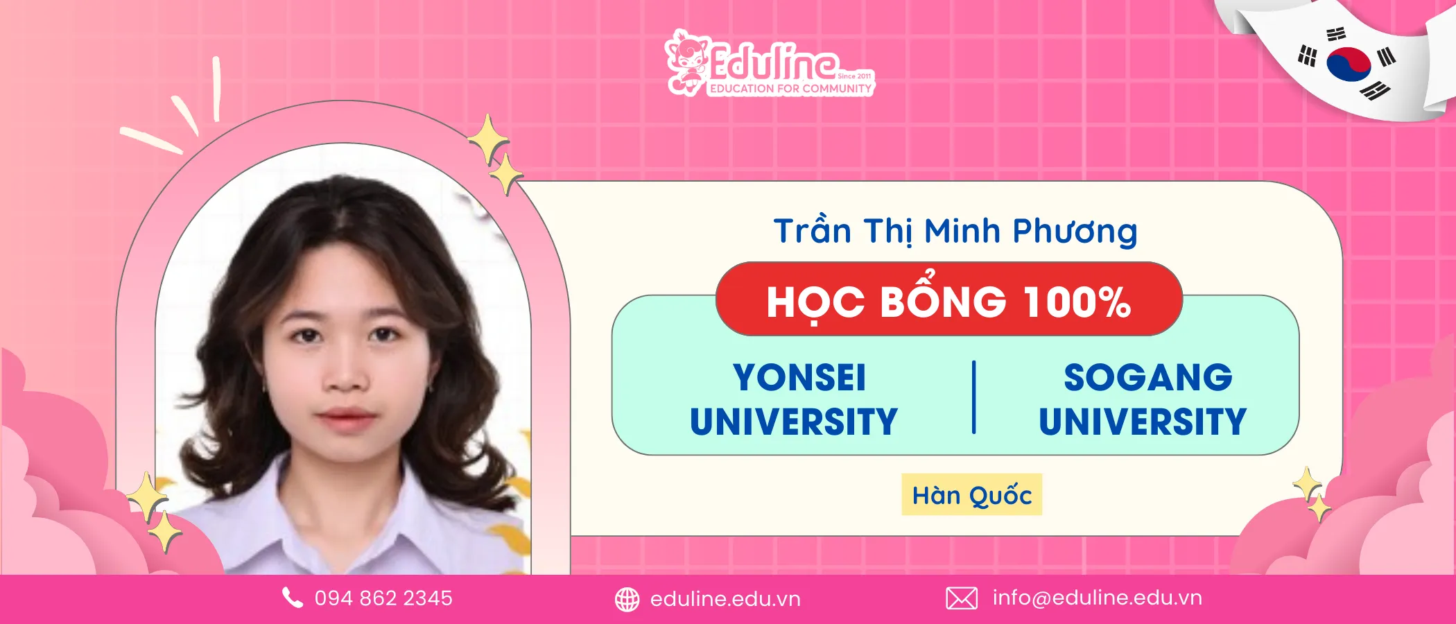 Với quyết tâm và nỗ lực không ngừng, em Trần Thị Minh Phương – học viên của Eduline Scholars, đã xuất sắc giành được hai suất học bổng danh giá tại Hàn Quốc: