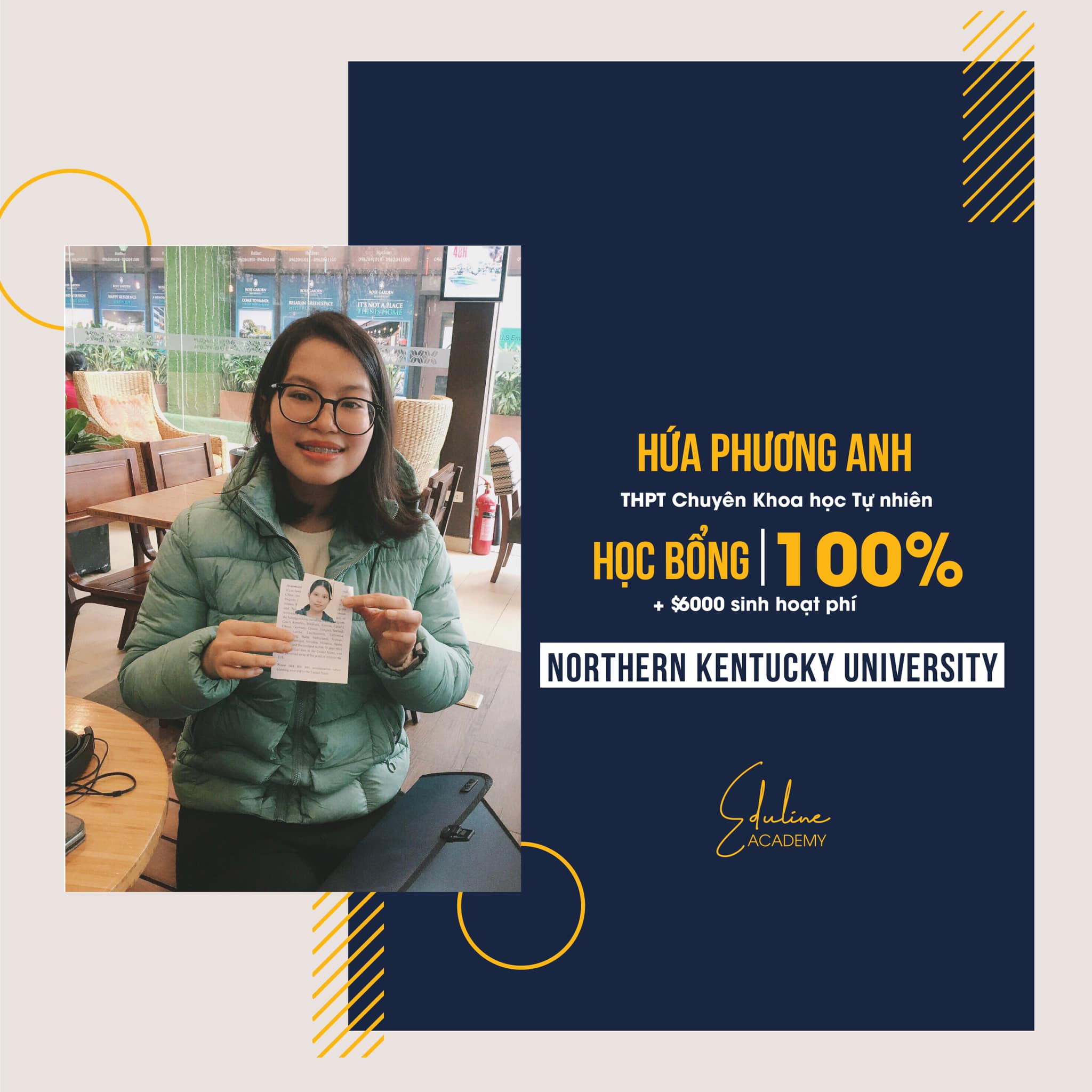 Mọi thứ đều vội vàng nhưng qua đó, nỗ lực của cô bạn 18 tuổi đã giúp bạn tỏa sáng. Với điểm số và bài luận xuất sắc, cùng với tiềm năng và những nỗ lực được phát huy trong thời gian ngắn của bạn đã gây ấn tượng với trường NKU. Suất học bổng Mỹ 100% giờ đây đã trở thành hiện thực.
