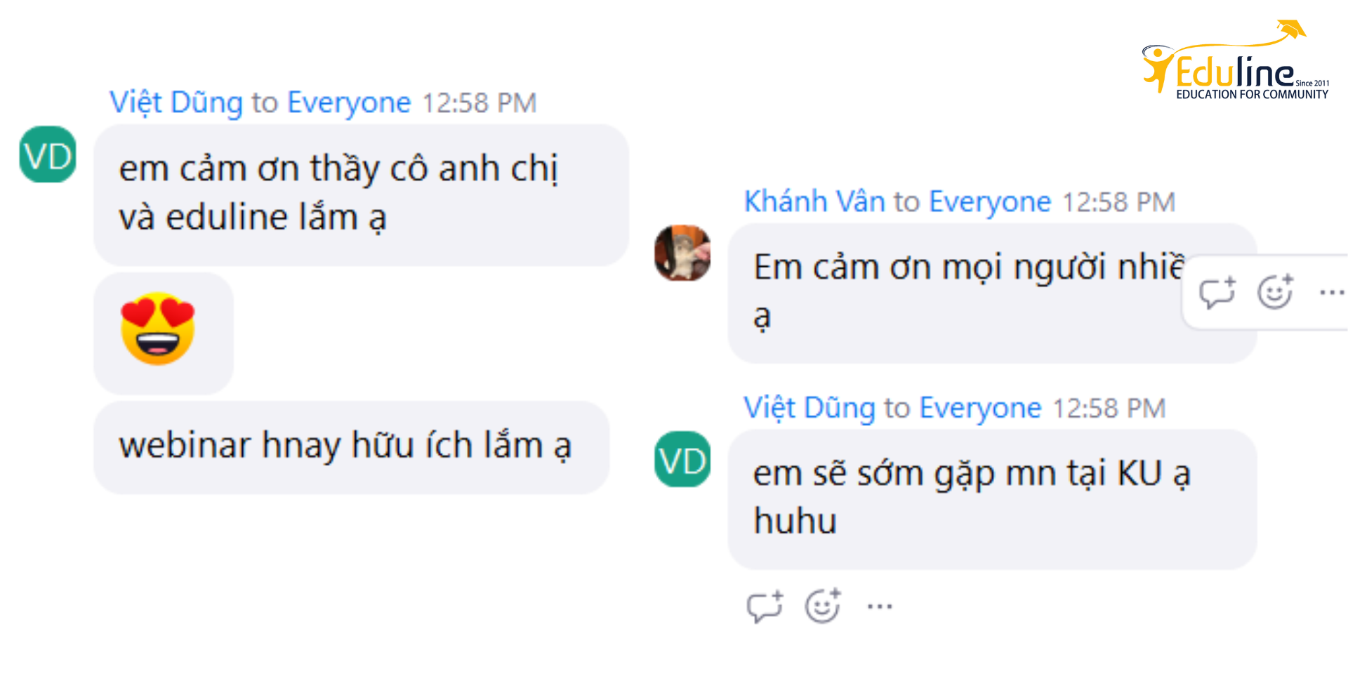 Hi vọng rằng sẽ có nhiều học sinh của Eduline trở thành sinh viên trường Đại học Korea danh giá trong năm nay và rất nhiều năm sau nữa. Sau buổi Webinar, nếu các em có còn những thắc mắc gì khác về trường Đại học Korea thì hãy inbox ngay cho Eduline để được tư vấn tận tình nhé!