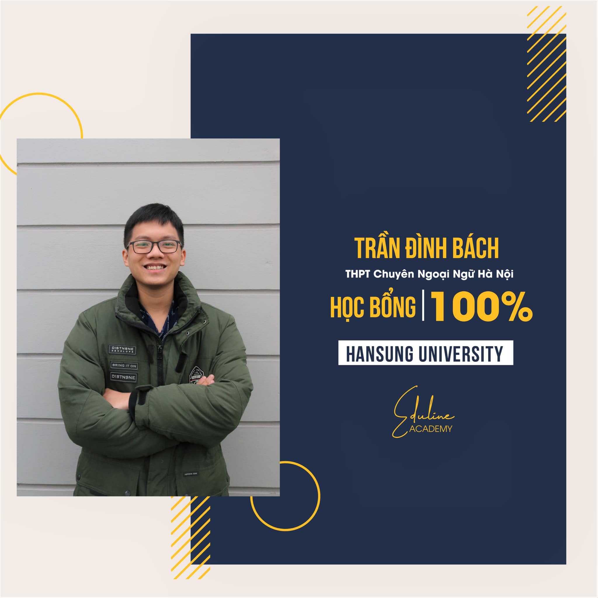 Chúc mừng Bách với quá trình nỗ lực không ngừng nghỉ. Chứng kiến em thất bại 2 lần nhưng không bỏ cuộc và thành công cuối cùng đã đến như một sự đền đáp cực kỳ xứng đáng! Eduline chúc em có một chuyến bay bình an, một khởi đầu tốt trên hành trình mới trên con đường học tập của mình. ❤